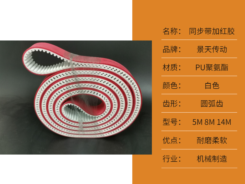 表面覆加红胶可以增加摩擦和降低材料的硬度,使物品在同步带上面输送得更平稳;